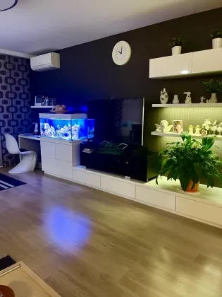 Продается уютная светлая 4-комнатная квартира в кирпичном доме бизнес-класса. Отличный варианта для комфортного семейного проживания в Железнодорожном районе, обязательно обратите внимание на эту квартиру. В квартире грамотно организовано пространство: общая зона, состоящая из гостиной с декоративным камином и красивым аквариумом, уютной кухни, гостевого санузла и комнаты хранения, и приватная зона с тремя спальнями, просторной гардеробной и хозяйским санузлом.