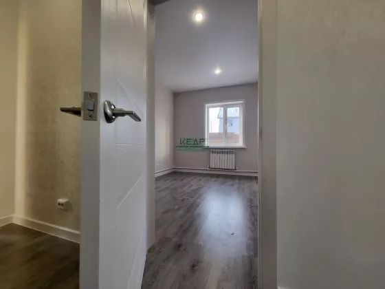 Во всем доме пятикамерные окна, натяжные потолки со встроенными светильниками, ламинат 33 класса, моющиеся обои.