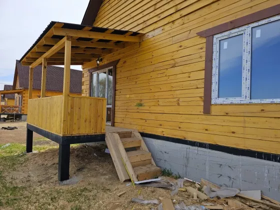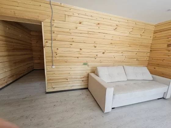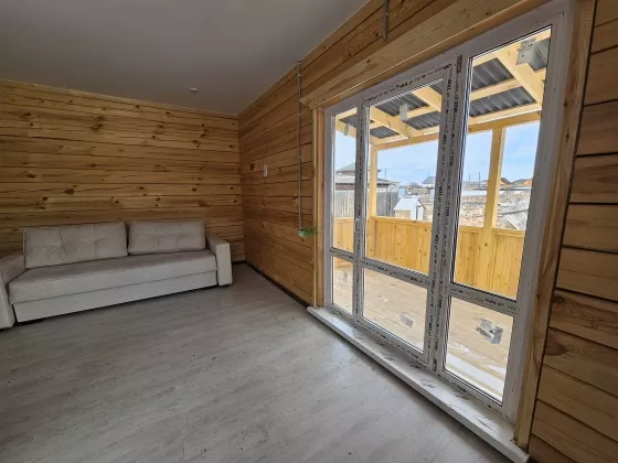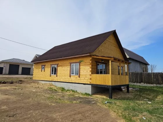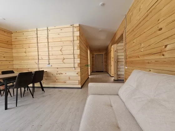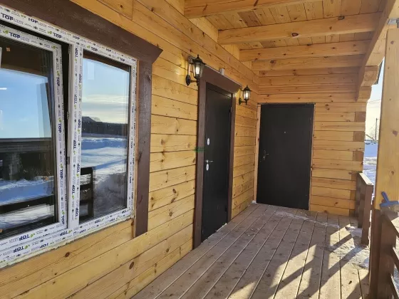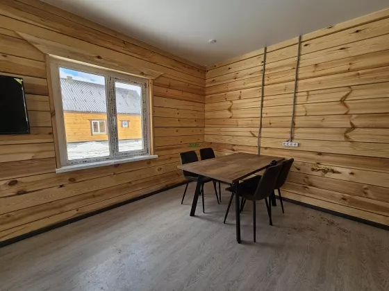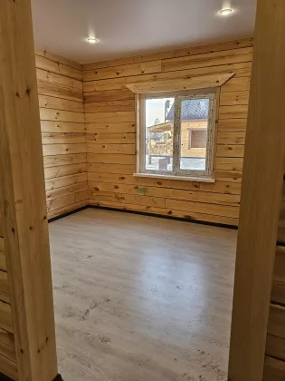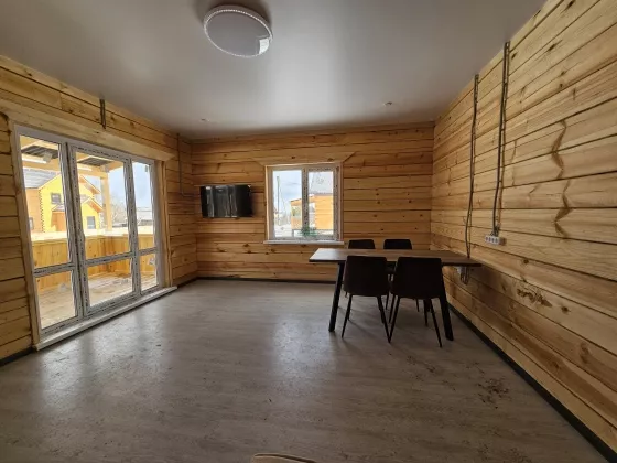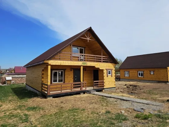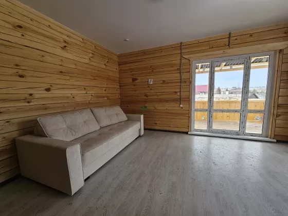 Продается новый двухэтажный деревянный дом площадью 100 кв.м. на земельном участке 6 соток. Размер бруса 180х180мм, 2 террасы, вход в техническую комнату отдельный. Второй этаж мансардный со свободной планировкой и выходом на балкон, что позволяет организовать пространство по своему усмотрению. На первом этаже расположены уютная гостиная с кухней, 3 просторные спальни, совмещенный санузел и зона для организации и установки лестницы на второй этаж. В гостиной имеется выход на небольшую террасу с видом на участок. Напольное покрытие – ламинат, потолки - натяжные.
