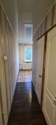 Квартира частично подготовлена под ремонт, на полах фанера (кроме коридора - там ламинат) - можно положить чистовое покрытие которое нравится Вам, а также переклеить обои/покрасить стены. Окна пластиковые, кроме одного. Батареи старого образца. Вся мебель на фото - может быть оставлена или оперативно вывезена по желанию покупателя. За холодильник выведены коммуникации под установку стиральной машины.