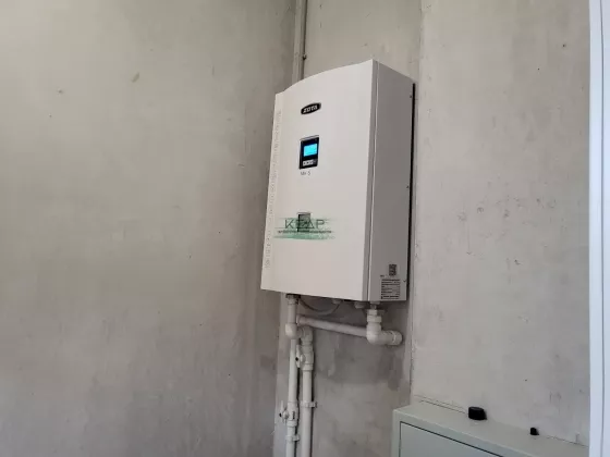 Отопление - биметаллические радиаторы, электрокотельная (Zota 6/9/12 кВт), пяти камерные окна, потолок натяжной со встроенными светильниками. Дом оснащен всем необходимым оборудованием и коммуникациями: эл. энергия 15 кВт, септик 5,8 м3, автономное водоснабжение (скважина до 40 м).