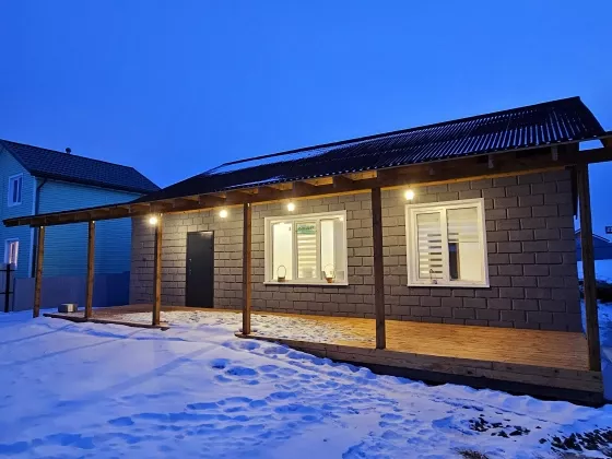 Представляем Вашему вниманию отличный вариант как для отдыха, так и для постоянного проживания - новый дом с террасой общей площадью 130 кв.м. Дом изготовлен из теплоблоков, установлены пятикамерные пластиковые окна, межкомнатные двери. В доме расположены просторная светлая гостиная с кухней, 3 спальные комнаты, совмещенный санузел, техническая комната, прихожая. Напольное покрытие – ламинат, потолки - натяжные. Санузел полностью отделан керамогранитом, установлена ванна. Отопление: в доме установлен электрокотел ZOTA с выводами управления теплых полов. Электричество подведено 15 кВт. Водоснабжение: скважина. Установлен бойлер для нагрева воды. Канализация: септик 6куб.м. Стоимость указана без учета стоимости участка.