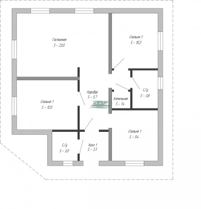 В доме предусмотрены места для расположения стенных шкафов, что значительно улучшает качество жизни, позволяя сохранять свободное пространство. Котельное, насосное оборудование, бойлер для нагрева воды находится в отдельном техническом помещении.