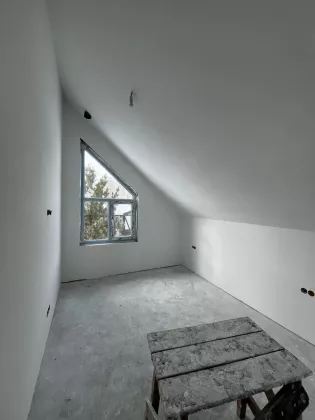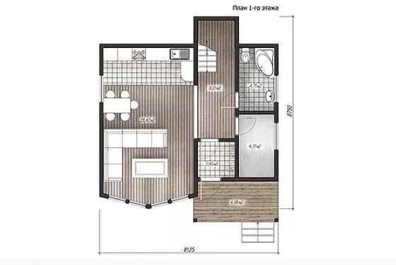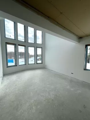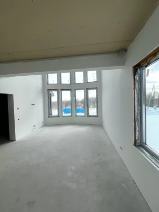 Комфортная планировка: На первом этаже просторнейшая кухня-гостиная с прекрасными панорамными окнами и так же совмещённый санузел. На второй этаж ведёт лестница, где располагаются две спальных комнаты и кладовая. Светлый и теплый дом по индивидуальному проекту отлично подойдет для комфортной семейной жизни.