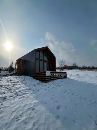 Общая площадь дома - 40 кв.м. Дом построен из СИП-панелей с утеплением стен в 250мм. Очень теплый, экономически эффективный, в виду минимальных затрат на обслуживание. Все системы жизнеобеспечения заведены в дом. На первом этаже расположены совмещенный санузел, прихожая, просторная кухня-гостиная, на втором этаже - спальня. Вся мебель, техника всё остаётся в доме! В доме также предусмотрен дополнительный выход на небольшую открытую террасу.