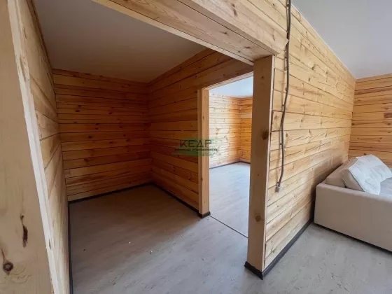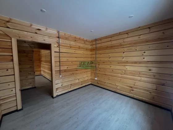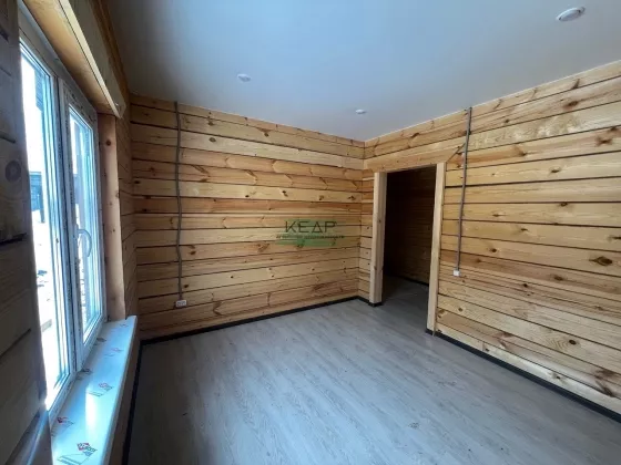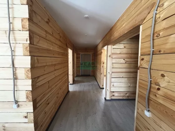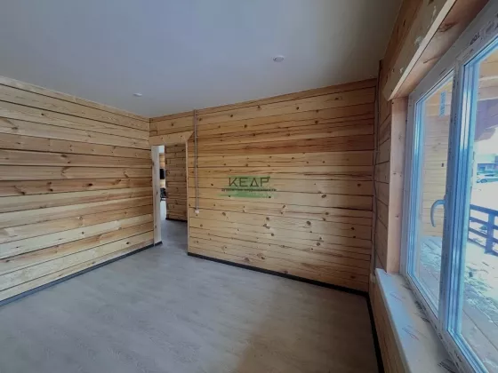 Дом из бруса размера 180х180мм. В доме имеются две небольшие террасы. Второй этаж мансардный со свободной планировкой и выходом на балкон, что позволяет организовать пространство по своему усмотрению.