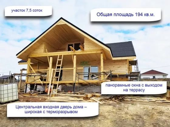 Представляем Вашему вниманию отличный вариант как для отдыха, так и для постоянного проживания - новый дом с террасой общей площадью 194 кв.м. на земельном участке 7,5 соток. Дом изготовлен из бруса размером 180х180 мм, установлены пятикамерные пластиковые окна, широкая входная дверь с терморазрывом. Дом продается в чистовой отделке, забор по периметру участка с воротами, отсыпанная дорожка до дома.