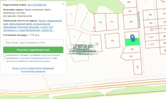 В избранное Продается ровный земельный участок в Емельяновском р-не, с. Устюг, ДНТ "Журналист", 11,7 соток.