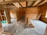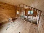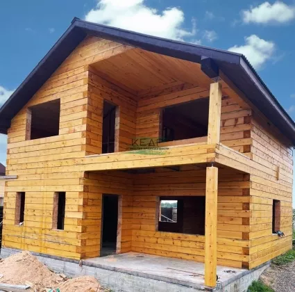 Рядом на таком же этапе строится дом, с аналогичной планировкой и отделкой. Но данный дом возведен из бруса (15х15), утеплен и обшит имитацией бруса.