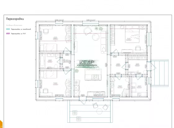 В доме 3 спальни + кухня-гостинная и 2 сан. узла + терраса и крылцо из лиственницы с пропиткой.