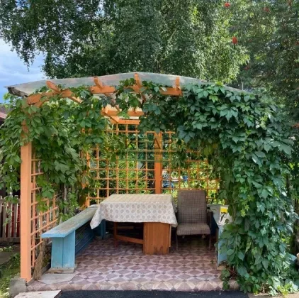 На участке имеются: теплица (7,5х4,5м); баня (12м2); беседка; дровенник; пристройка-мастерская (12м2); бак для воды; скважина. - Круглогодичное электроснабжение.