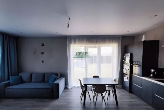 Отопление во всём доме водяной тёплый пол. Внутри натяжные потолки, стены окрашены, напольное покрытие кварцвинил. Санузел полностью в керамограните. Полностью оборудованная кухня, сделанная под заказ, встроенная техника, посудомоечная машина.