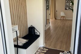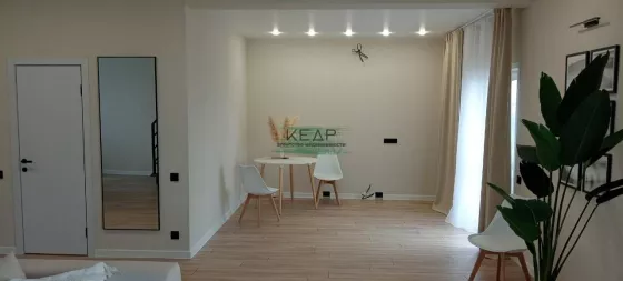 - Чистовая отделка в светлых тонах, тёплые полы, натяжные потолки со светильниками,