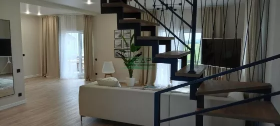 - Бoльшая кухня-гостинaя (29 м²) с пaнорaмными окнaми и выходом на террасу 30 м²