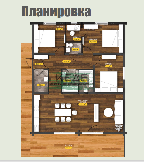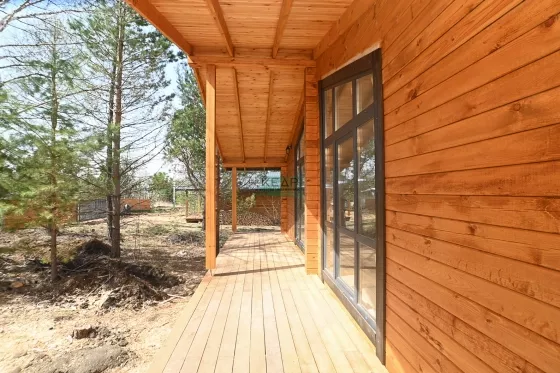 Идеален для семейной жизни с тремя комфортными спальнями и компактным кабинетом. Центр дома — гостиная-кухня (37,6 м²) с панорамным окном и выходом на террасу (37 м²). Два санузла и дровяной камин обеспечивают высокий уровень комфорта, создавая настоящий семейный очаг, где приятно собираться всем вместе.